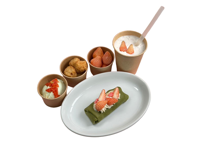- 白いちごスムージー/翁の細工豆腐(2種)/翁のおからコロッケ