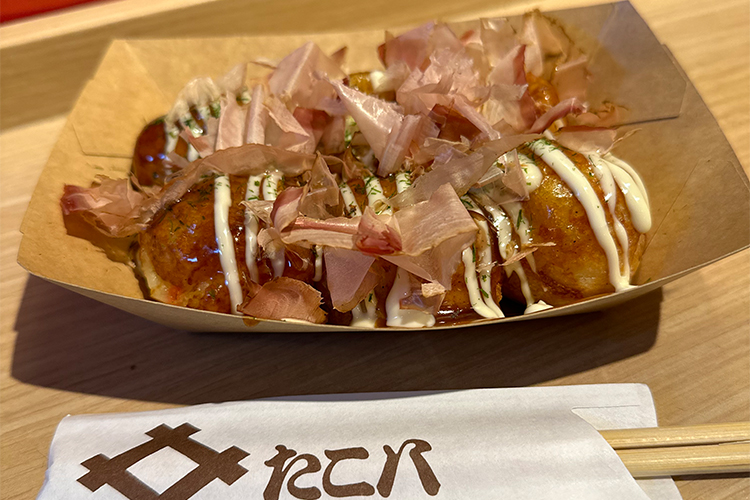 - まわりはこんがり、中身はとろりのたこ焼にマヨネーズと塩のトッピング。